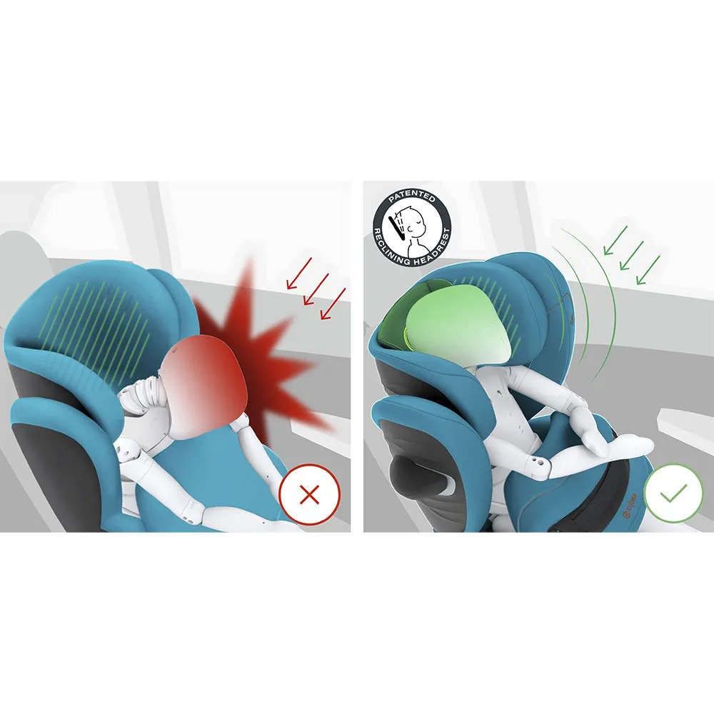 The patented 3-position Reclining Headrest helps prevent the child´s head from tipping forward while sleeping.