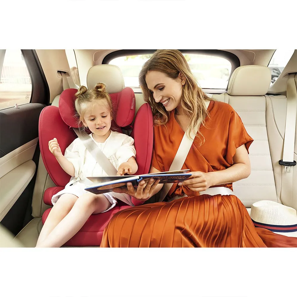 – Adjustable backrest: Perfectly adjusts to the vehicle seat for improved safety.
