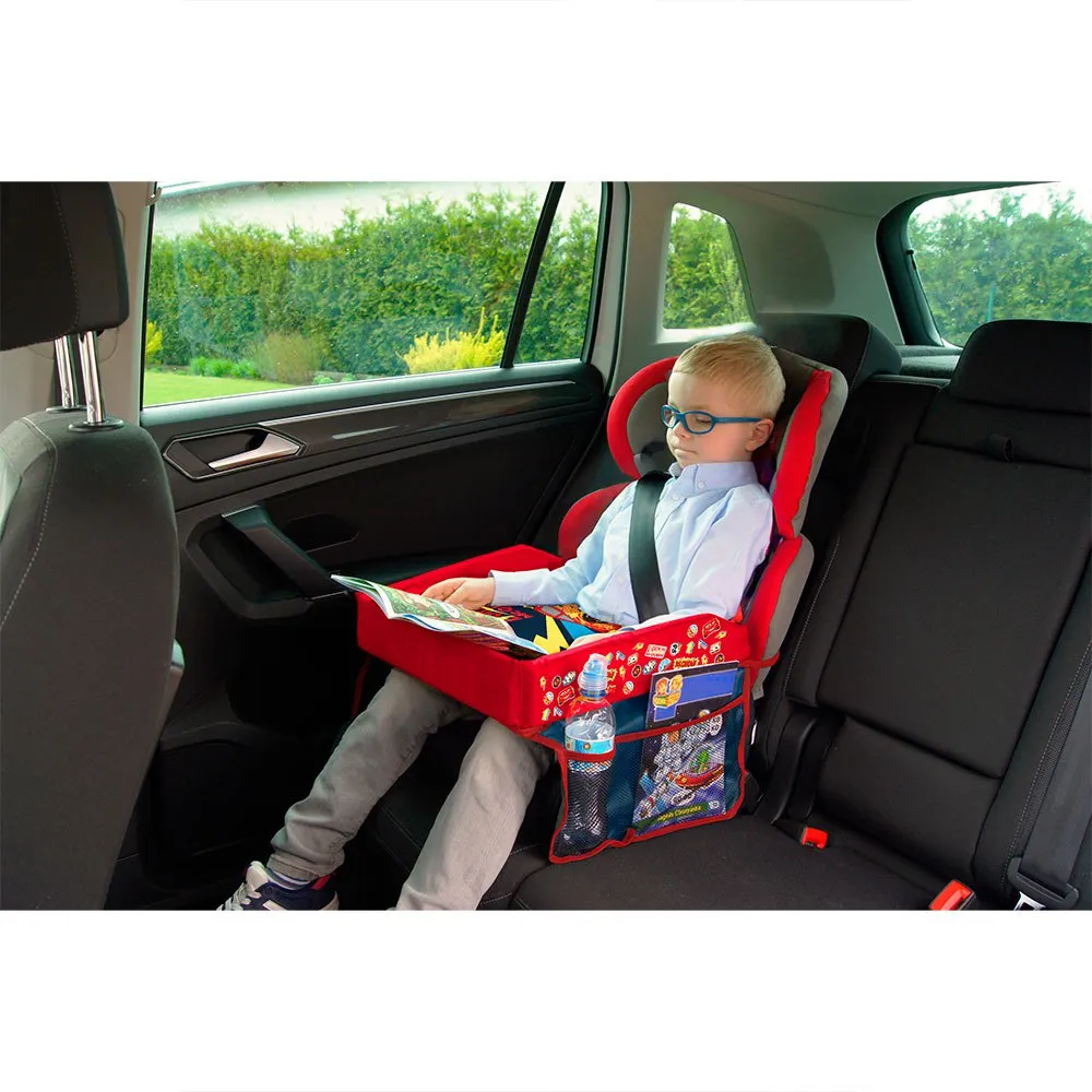 Table has large pockets made of elastic mesh that will hold the accessories.