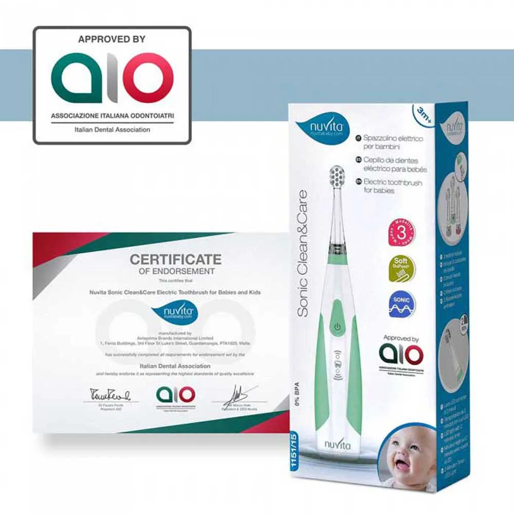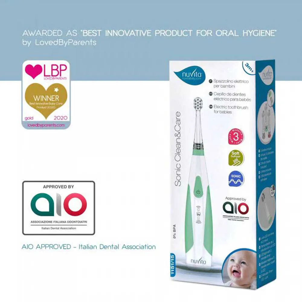 The only children´s electric toothbrush designed specifically for babies and children ages 3 months to 5 years.