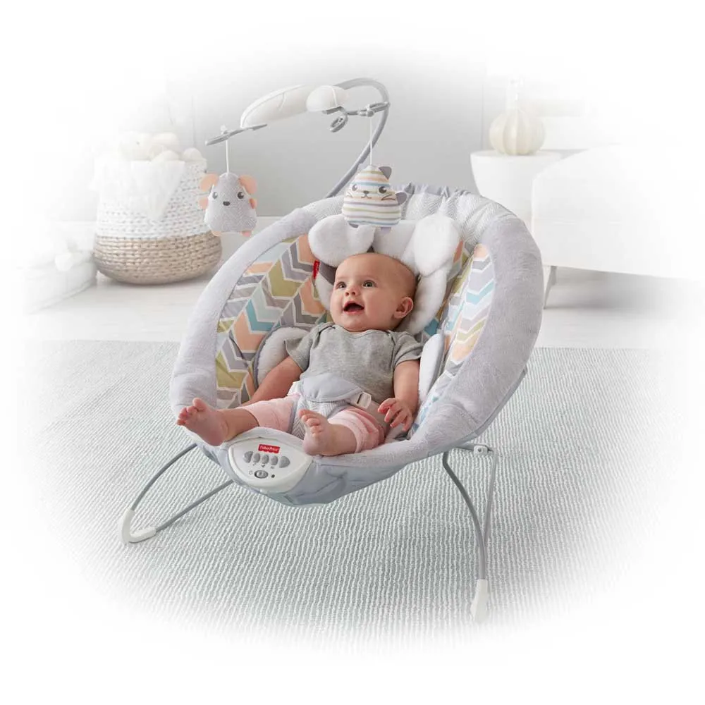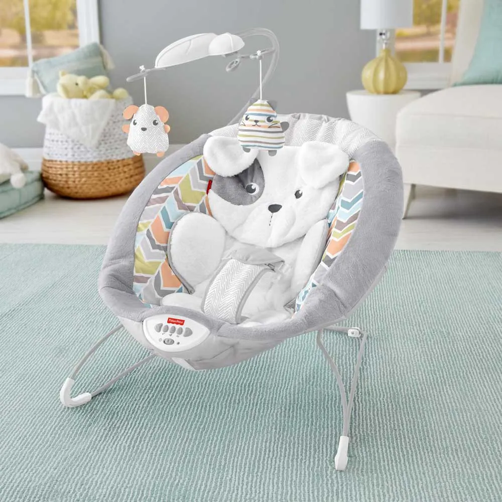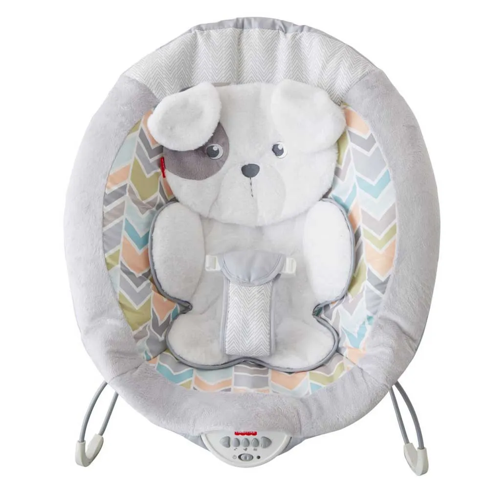 Give your little one (and your arms!) a break with the Fisher-Price® Sweet Snugapuppy™ Deluxe Bouncer.