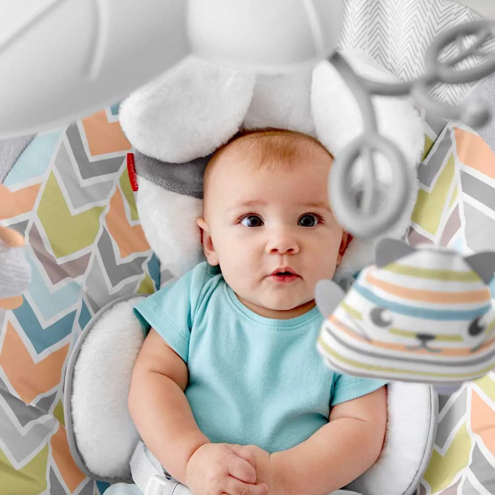 When playtime is over, calming vibrations help soothe tiny ones as they snuggle into the extra comfy seat.