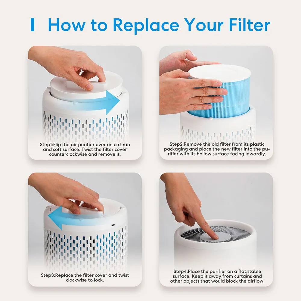 The replacement filter should be replaced every 3-6 months depending on the environment and frequency of use.