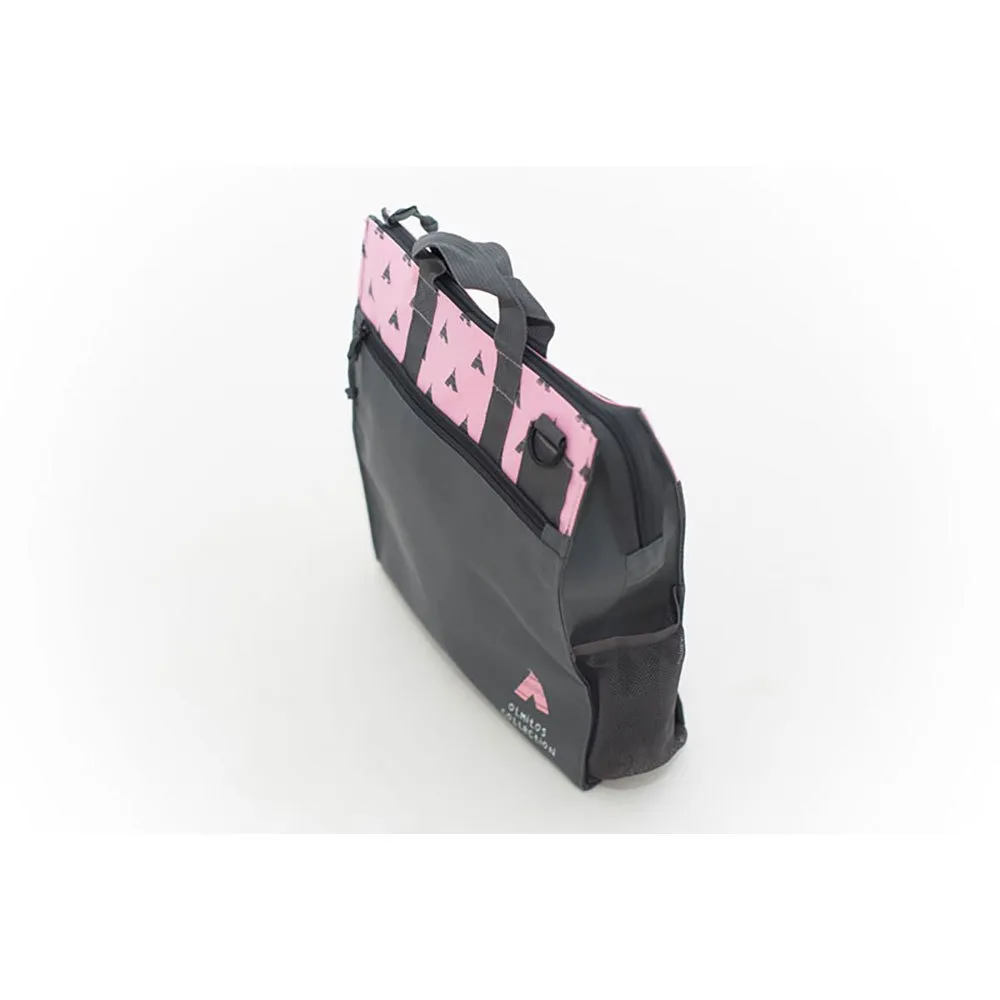 Multiple interior compartments, exterior zip pocket and side pocket with mesh.