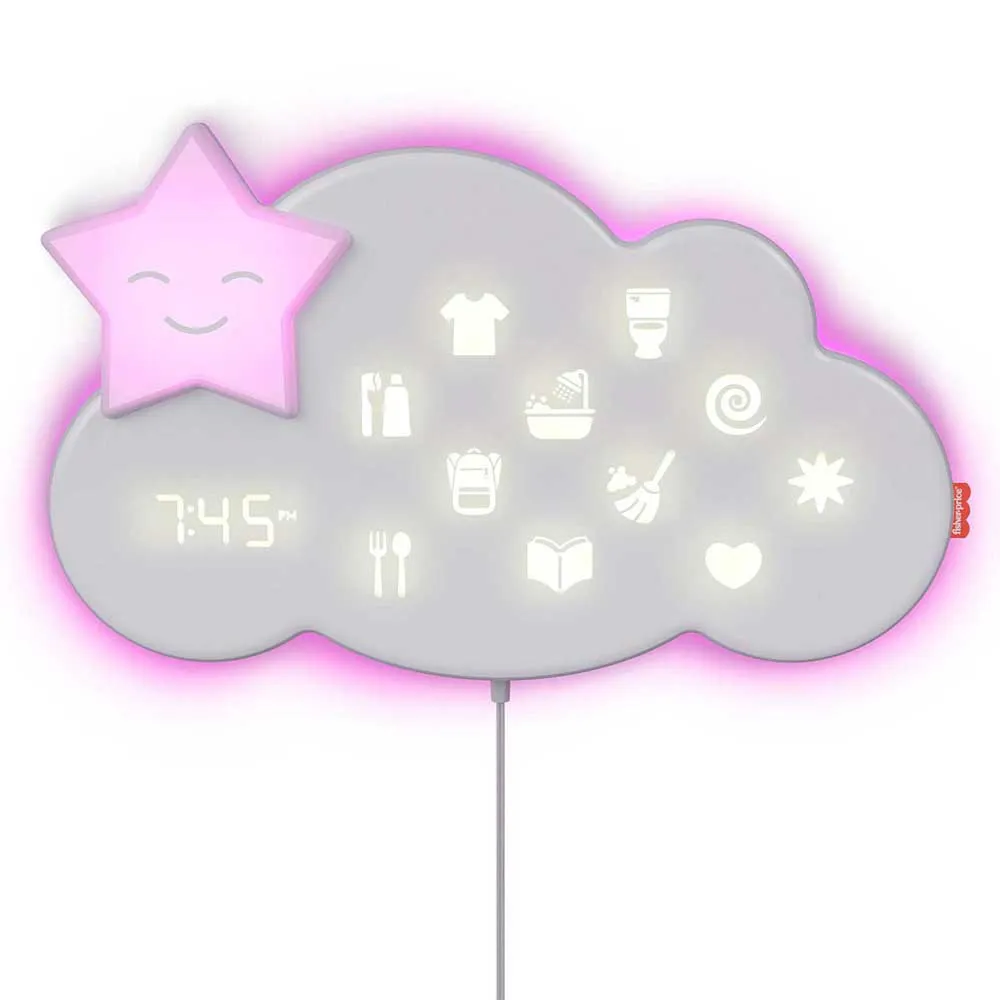 The Fisher-Price® Lumalou™ Better Bedtime Routine System helps make getting your child to bed easier. The wall-mounted, interactive helper guides kids through the nighttime routine, rewarding them as they complete each task. The Lumalou™ system also serves as an infant to toddler sleep-training tool and sound machine with lights and a sleep expert-approved music playlist to help your child settle down for sleep. Easily customize and control your child´s daily tasks, sleep timers, as well as the music, sounds and lights with the convenient Smart Connect™ app.