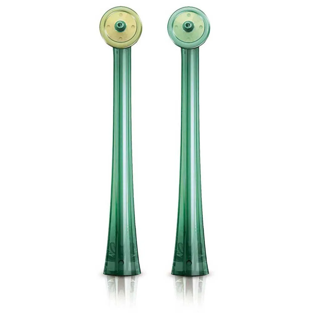 – The slim angled nozzle and guidance tip make finding the correct placement easy. Just slide along the tooth’s surface near the gum line until the tip fits into the groove between the teeth.