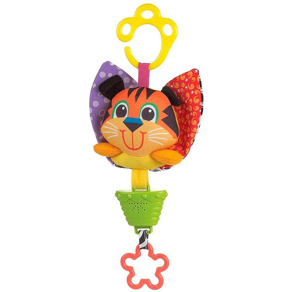 This playful tiger is the ideal stroller and bed companion for your little one. Just pull the flower ring and you´ll hear four soothing melodies. The mix of plush, woven and hard surfaces stimulates curiosity and encourages tactile development. With the help of the clip, this music box can be easily attached to most prams, buggies, babies or in the car.