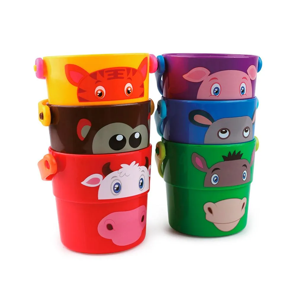Set with 6 colored cubes with handles to transport and holes on the base for pouring water or sand fun and relaxing, either in the bathroom, in the pool or on the beach.
