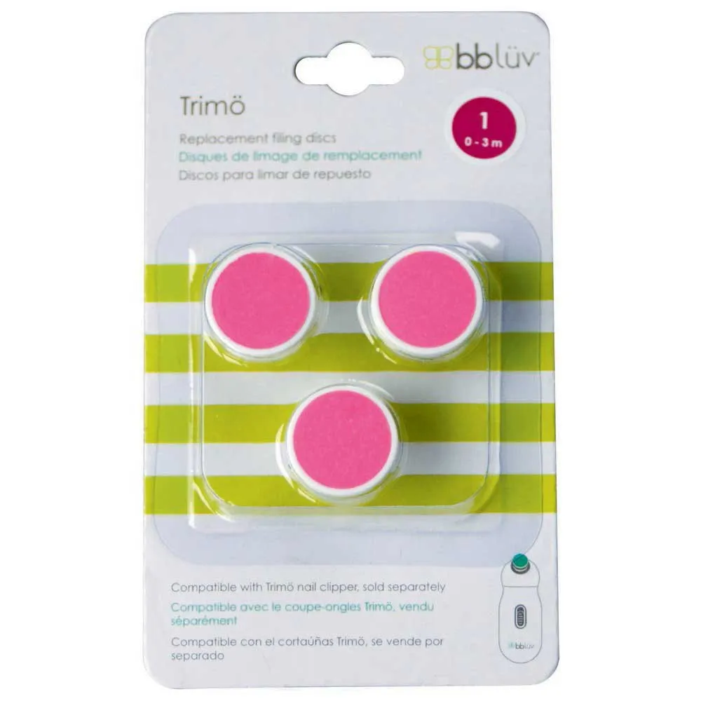 3 replacement discs in size 0-3 months for the bblüv Trimö nail file. Discover the safest way to shorten your child´s nails without risk of injury and extremely quiet. Thanks to these replacement discs, you can adapt the file to the baby´s age and achieve a complete and lasting experience without causing pain to the little one.