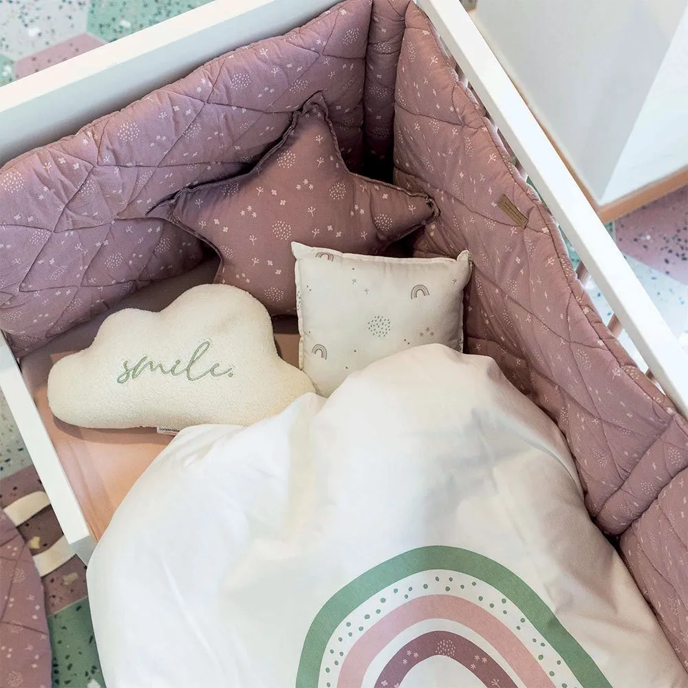 Combine cushions of different shapes and colors to match the crib linen or the play area.