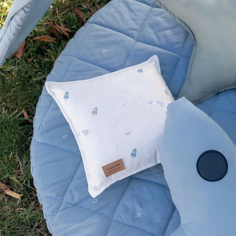Combine cushions of different shapes and colors to match the crib linen or the play area.